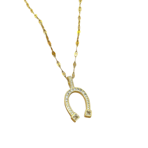 Un éclatant collier en or orné d’un pendentif en fer à cheval scintillant, symbole raffiné de chance et d'élégance intemporelle