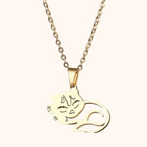 Adoptez un mignon petit chat tout doré déjà endormi , qui restera tout au long de la journée autour de votre cou grâce à ce collier doré chat qui dort, parfait pour montrer votre amour et votre passion pour le petit animal qui vous réchauffera le cœur 🐱