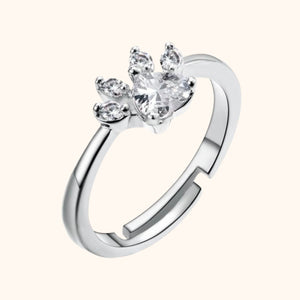 Votre petite boule de poils vous manque ? Portez cette merveilleuse bague argentée cristal patte de chien, un bijou chic et élégant pour la garder près de votre cœur partout où vous allez 🐶