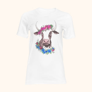 T-shirt blanc pour femme vache de la prairie