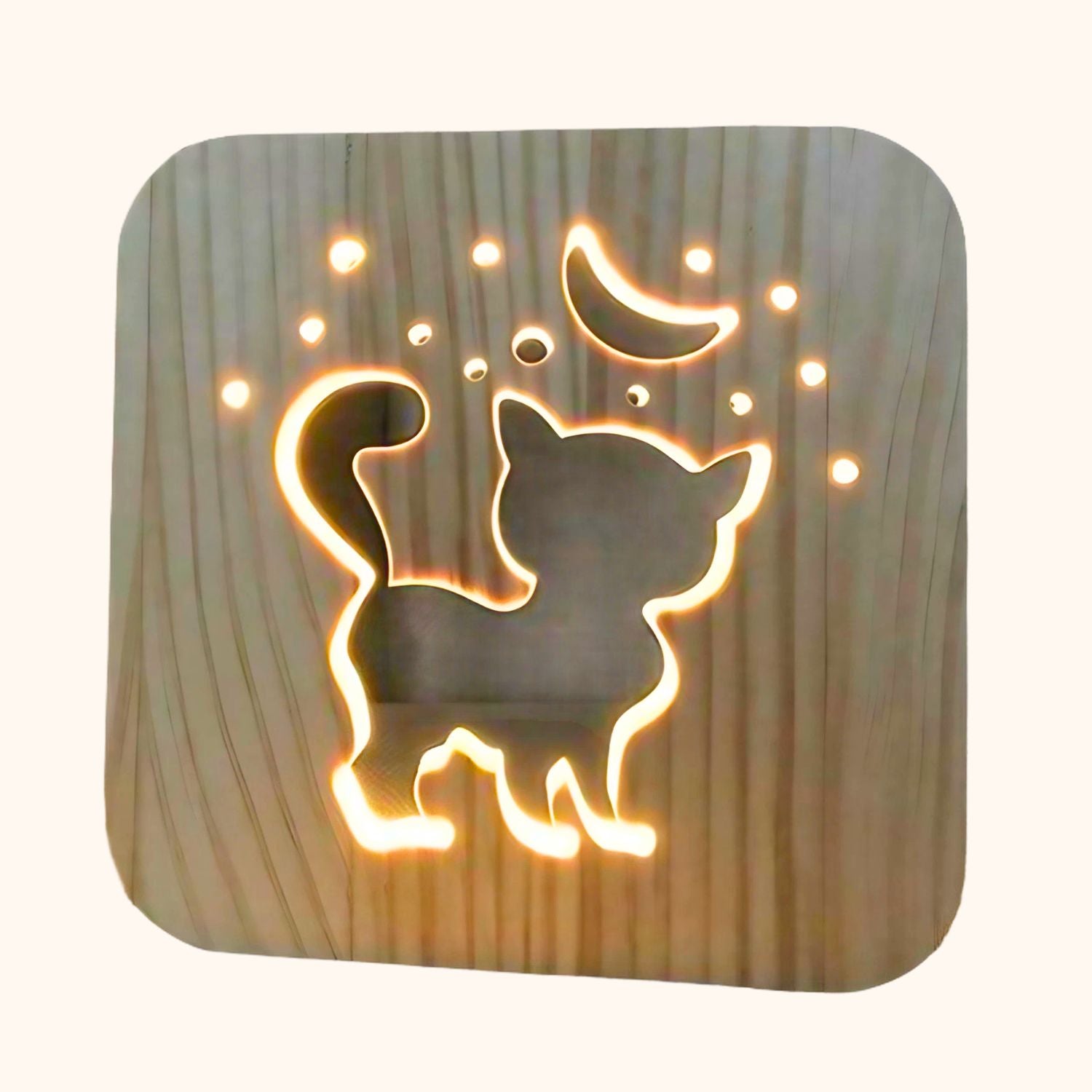 Lampe en bois petit chat