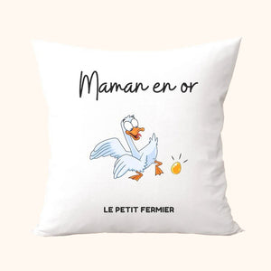 L'oie de la ferme a pondu un précieux oeuf en or qu'elle donnera à sa maman pour lui prouver son amour. Aujourd'hui Le Petit Fermier vous propose de vivre ce moment magique imprimé sur une housse de coussin maman en or, qui décorera à la perfection votre intérieur 🥚