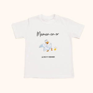 Le maladroit petit canard de la ferme, a fait tomber un œuf en or. Venez le retrouver sur un t-shirt canard maman en or, où il profite de ses deux mains gauches pour déclarer tout son amour à sa maman. Pourquoi pas profiter vous aussi de cette occasion pour remercier votre maman ? 🦆