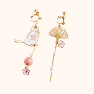 Tout amoureux de chats et passionnés du Japon doivent avoir ces boucles d'oreilles chat japonais ! Elles sont la combinaison parfaite, l'amour pour les chats avec la délicatesse des pétales roses des fleurs de cerisier ! 🐱