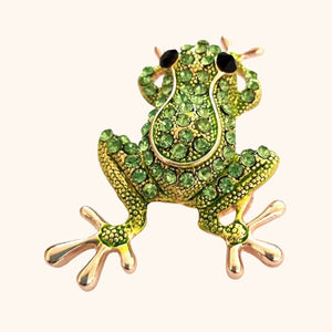 si y’en a qui mérite qu’on s’penche dessus, c’est bien cette broche grenouille, avec ses éclats émeraude qui scintillent plus fort que l'herbe d’printemps