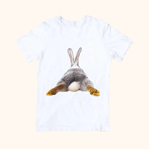 Un lapin tout mignon vient tout juste de sortir de son terrier pour se poser sur ce super t-shirt ! Pas de chance il vous montre son derrière, de quoi faire une jolie blague à un proche 🐰