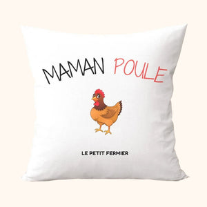 La petite maman poule de la ferme s'est installer confortablement sur vos coussins et délivre un message d'amour avec sa housse de coussin maman poule en lin de haute qualité 🐔