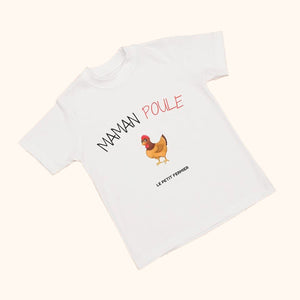 La poule de la ferme s'est mise sur son 31 et a décidé de vous transmettre un message pour toutes les mamans poules. Son message d'amour et de tendresse est disponible sur nos nouveaux t-shirts blancs au design simpliste, mais beaucoup trop mignon 🐓