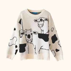 Son motif vache en fait un vêtement remarquablement original et tendance pour les véritables passionnés des animaux de la ferme. Notre pull-over est à porter sans prise de tête et s'associe parfaitement avec toutes vos autres tenues 🐮