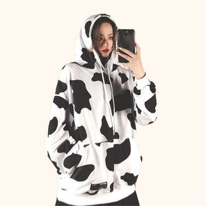 Depuis toujours, vous rêvez de vous camoufler en vache ? Que votre souhait s'exauce en portant notre sweat à capuche au design vache 🐮