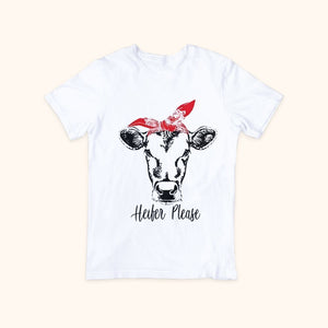 Parlons maintenant du design de ce T-shirt génial. Tout d'abord, la génisse sur le t-shirt est d'une beauté à couper le souffle, avec son bandana rouge vif qui ajoute une touche de couleur et d'originalité à votre tenue. De plus, notre design unique garantit que vous ne rencontrerez personne portant un t-shirt similaire. Vous pouvez être sûr que vous serez la vache la plus tendance de la ville.