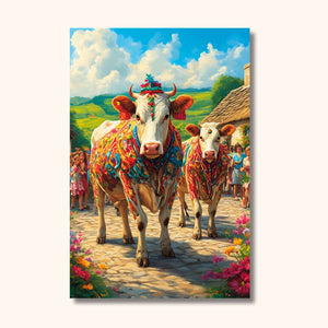 Mesdames et messieurs, approchez-vous pour admirer ce Cow parade vache, où nos vaches majestueuses se pavanent avec des parures colorées