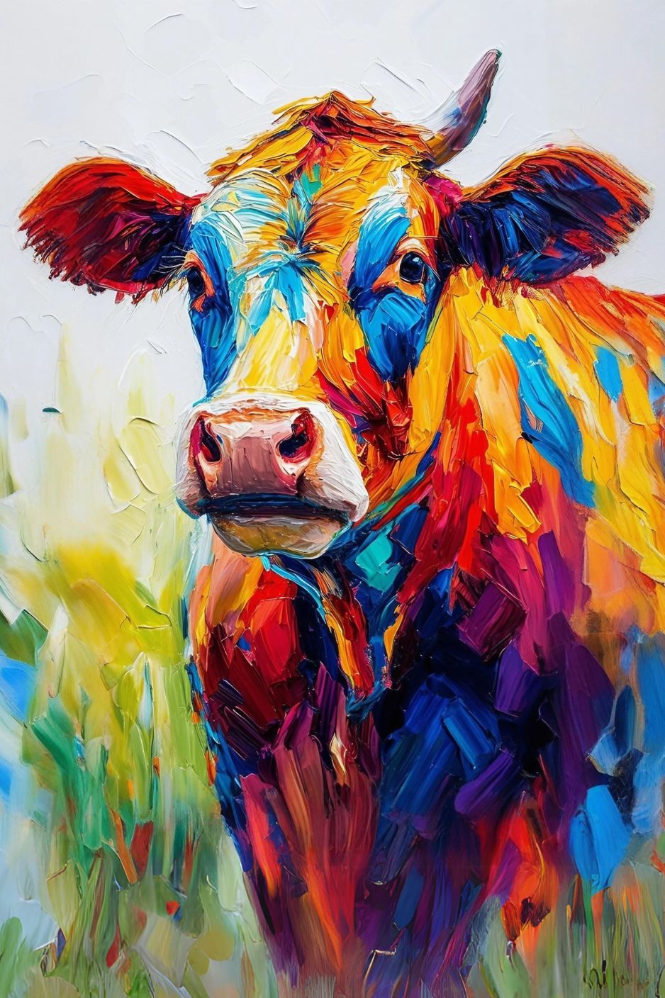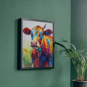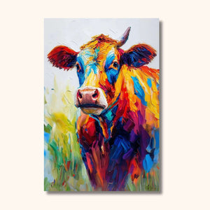 Du lait, oui, mais avec une touche de couleur ! Cette peinture vache colorée est le ticket VIP pour une expo exclusive dans votre salon ! 🐮
