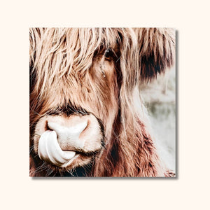 Avez-vous pensé à mettre une vache dans votre salon ? C'est tout à fait possible avec notre tableau et sa vache Highland qui tire sa plus belle langue. Sa toile de coton lui donne ce grain si particulier et sa qualité d'impression, des couleurs vives et naturelles 🐮