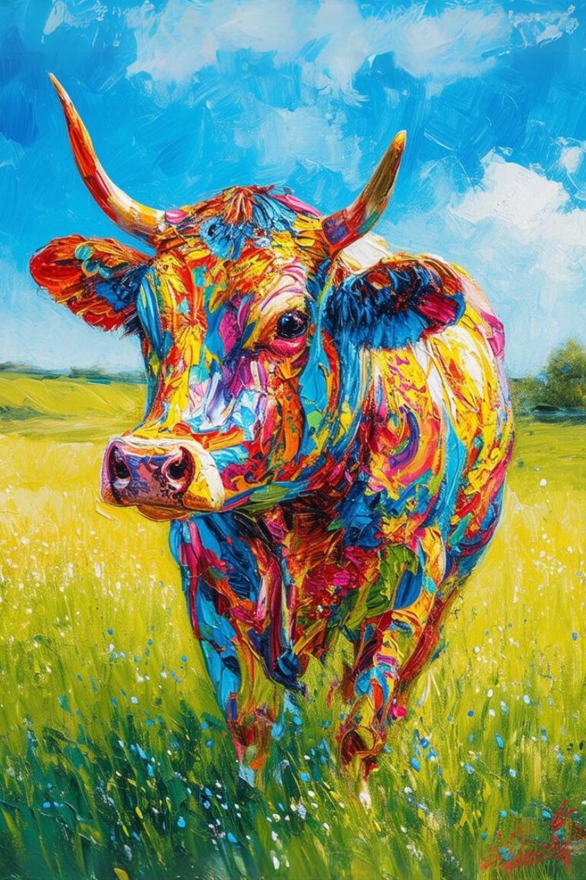 Dans mon pré, point de simples meuglements, mais une symphonie de couleurs avec notre vache Cowparade qui se rêve en muse des impressionnistes ! 🐮