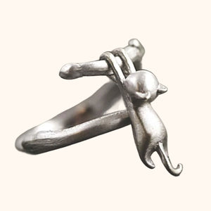 Les amoureux des chats ne pourront pas résister à cette adorable bague ajustable petit chat ! Elle met en scène un petit chat suspendu à une branche, une scène toute aussi mignonne que notre ami à poils 🐱