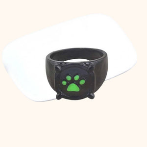 - Bague noire et patte de chat verte