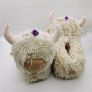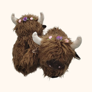 - Enfilez la nature avec des chaussons vache Highland fleuris