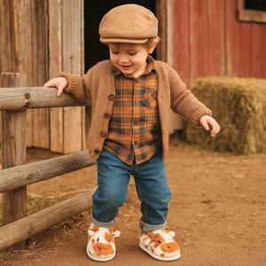 Viens donc brouter du bonheur avec les chaussons vaches Laitfraise tout moelleux, découvre nos chaussons vache prêts à meugler de plaisir, sans oublier les chaussons animaux de la ferme pour varier l’étable.