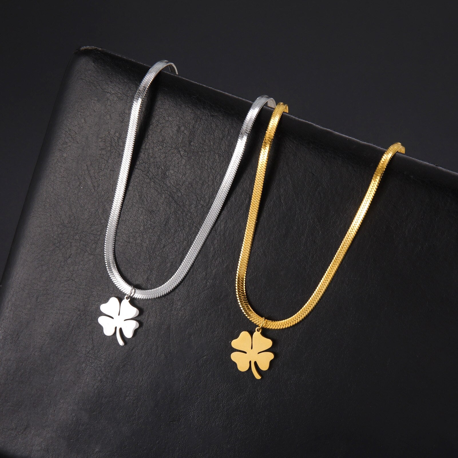 - Pendentif en forme de trèfle et sa chaîne de couleur dorée ou argentée