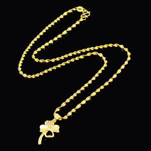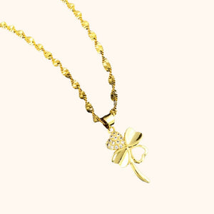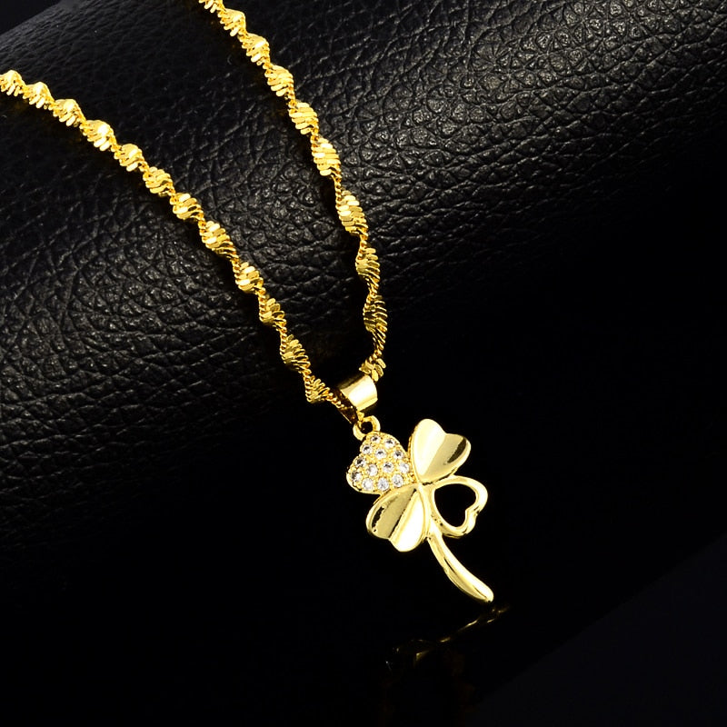 - Collier trèfle avec sa chaîne ondulée en or jaune 24k et orné de cristaux de zircon