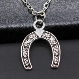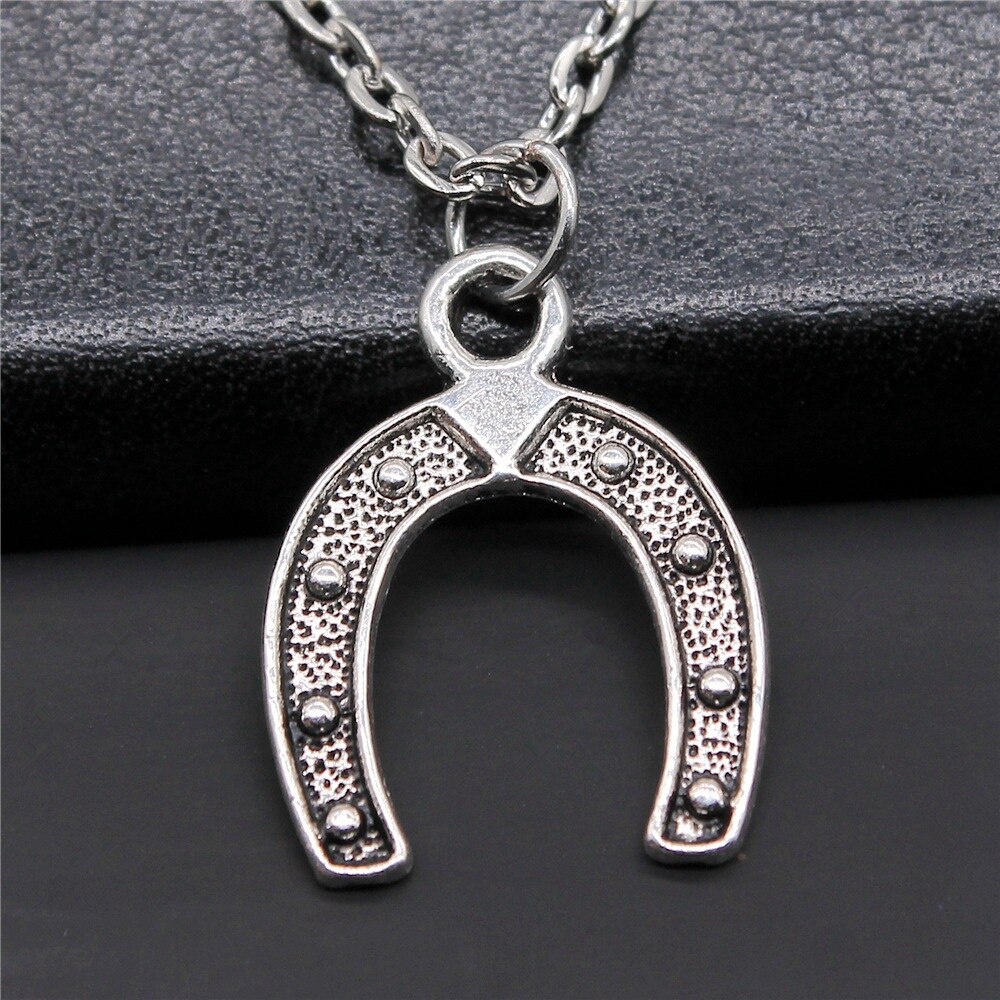 Suspendu à une chaîne délicate, ce pendentif en forme de fer à cheval, incrusté de motifs détaillés, capte l'essence de l'élégance et de la chance