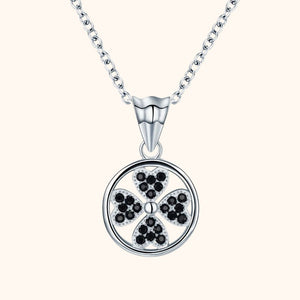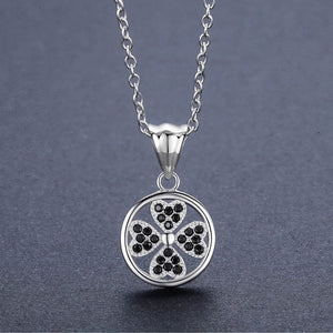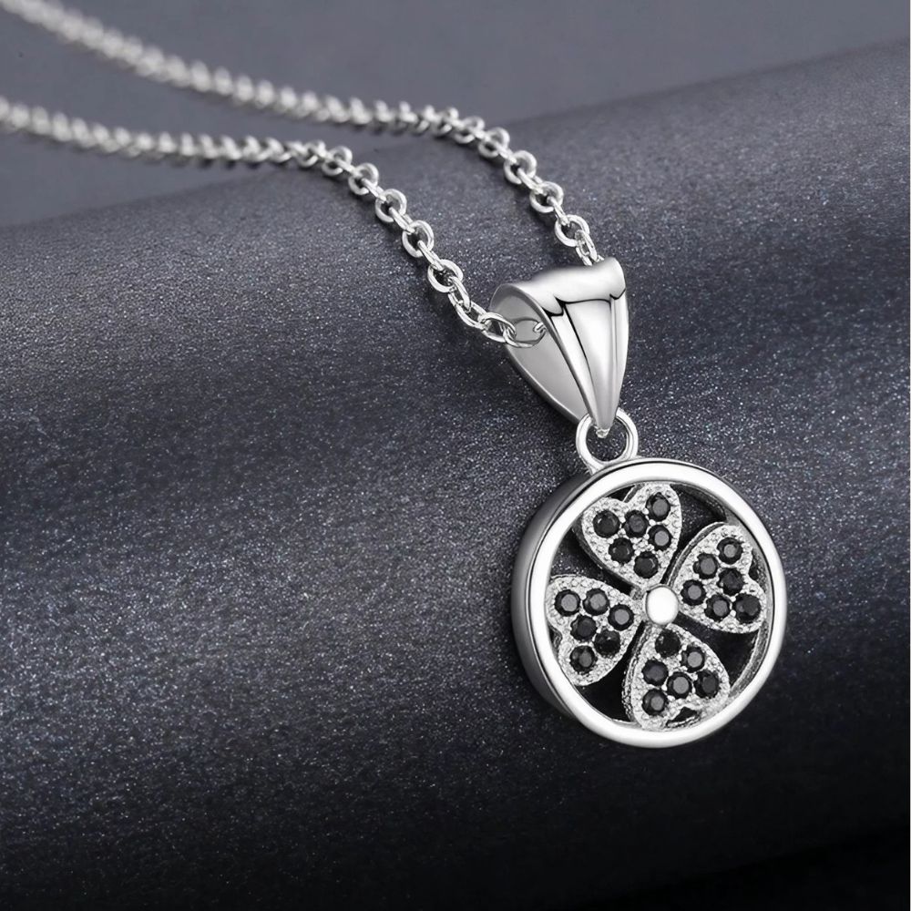 - Collier en argent véritable avec son pendentif en forme de trèfle à quatre feuilles orné de cristaux noirs
