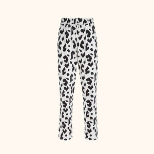 Un pantalon tendance au motif vache, parfait pour un style décontracté et audacieux