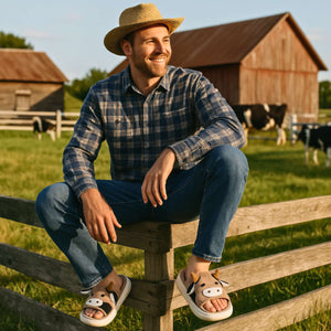 Mets tes sabots de luxe et trotte vers le confort, ces p’tites vaches sont prêtes à ruminer ton stress à chaque pas ! 🐮