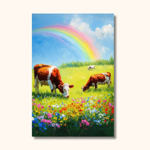 Faites entrer un bout de prairie chez vous avec notre peinture vaches colorées où les bovins de couleur ajoutent une touche de gaieté à votre décor ! 🐮