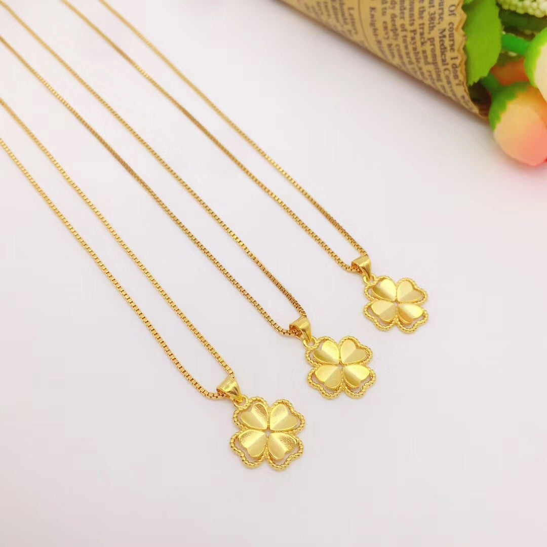 - Un collier doré orné d'un pendentif en forme de trèfle à 4 feuilles en or 18 k