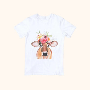 - T-shirt vache limousine avec bouquet de fleurs par Le Petit Fermier