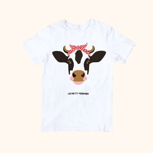 La vache de la ferme s'offre un look complètement décontracté en portant un joli bandana à poids, retrouvez-la avec son grand sourire sur un frais et joli t-shirt vachette bandana qui sera la future pièce maîtresse de vos tenues 🐮