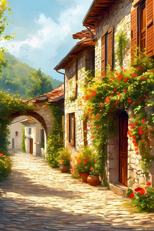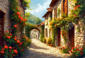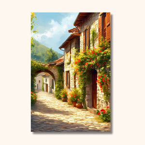 Vous avez déjà rêvé de vous perdre dans une ruelle aussi belle que celle-ci ? Avec ce tableau campagne chic, même les oiseaux chantent des sérénades aux murs en pierre