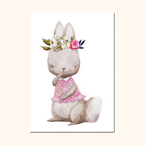 Décorez votre intérieur, votre chambre ou votre salon avec notre magnifique toile lapin avec robe rose et couronne de fleurs pour une décoration remplie de tendresse et d'originalité 🐰