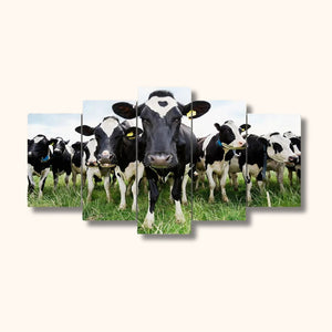 - Tableau livré en 5 pièces, résistant à l'eau en coton et lin de qualité supérieure avec une protection UV, représentant un troupeau de vache dans un champ