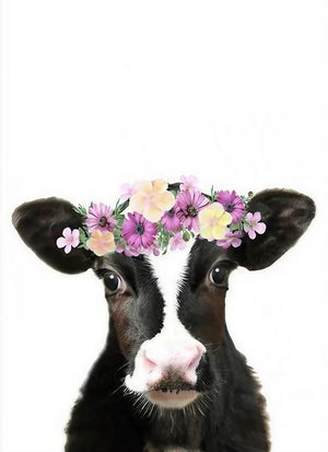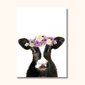 Décorez votre intérieur, votre chambre ou votre salon avec notre magnifique tableau vache avec couronne de fleurs pour une adorable décoration mignonne et fleurie ! 🐮