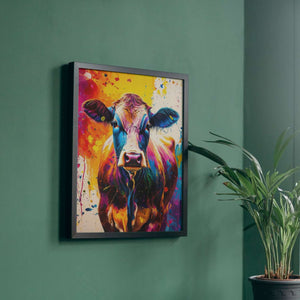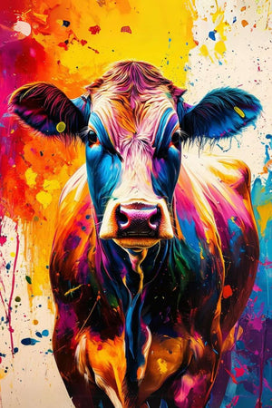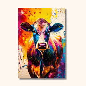 Laissez cette vache arc-en-ciel éclabousser de couleur votre salon, notre tableau vache multicolore est un véritable feu d'artifice champêtre ! 🐮