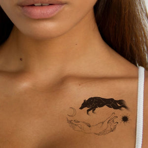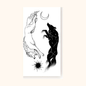 Rien ne dit "Je suis aussi intelligente et astucieuse que drôlement mignonne" comme un tatouage. Présenté par Le Petit Fermier, ce n'est pas juste un tattoo, c'est une véritable déclaration de style ! Inspiré du ying et du yang, ce kit vous offre un renard blanc et un goupil noir étoilé qui, mis ensemble, forment une harmonie parfaite - tout comme le beurre sur une tartine de pain frais !